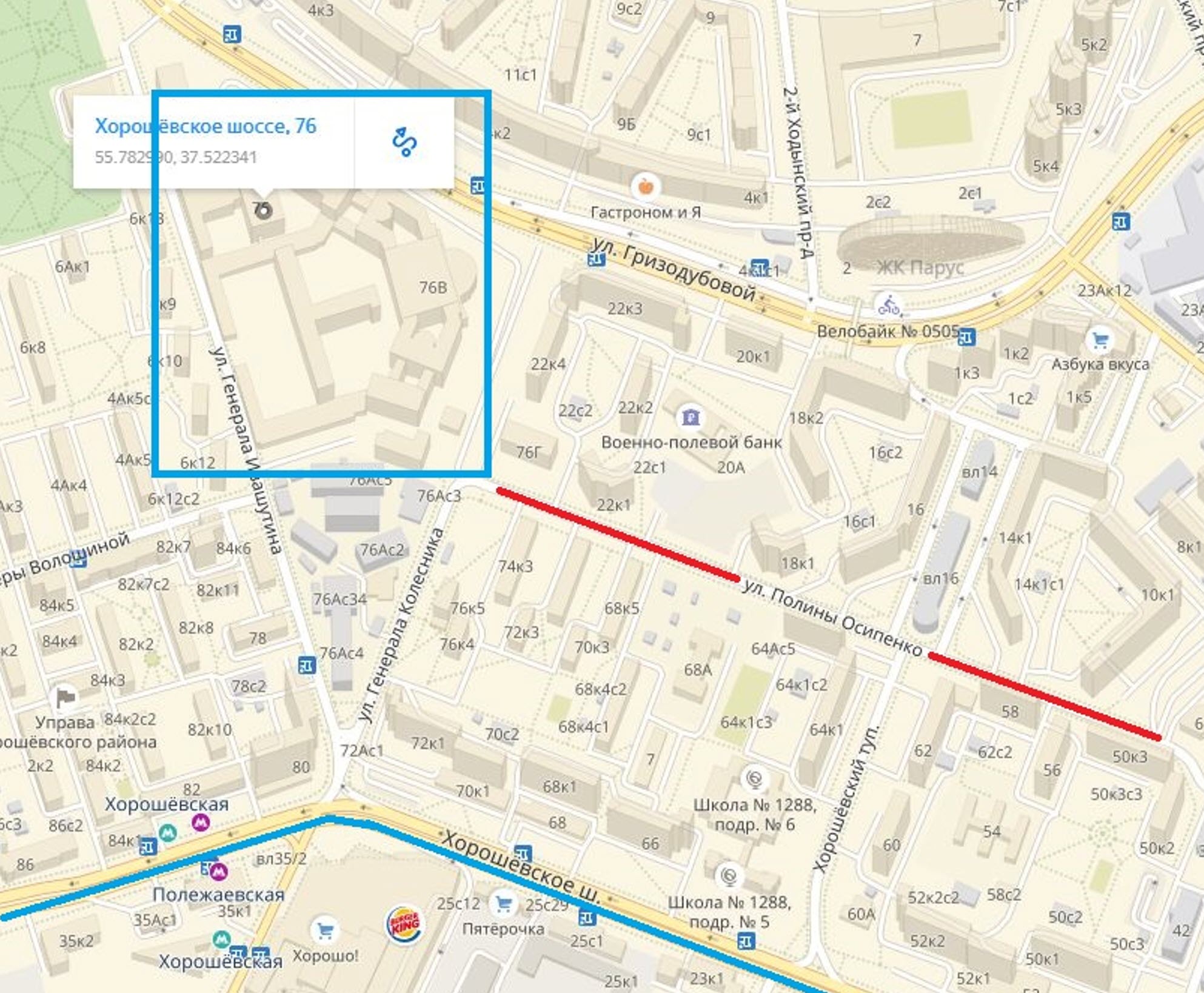 In the exposed database of the defunct Russian web shop, the same telephone number appeared in the customer profile of a person named ‘Oleg’, who had ordered an ‘elevation training mask’ from that website in 2017. The address for delivery noted in the database was not Ivannikov’s home address, but a different address in Moscow, described as ‘ulitsa Polina Osipenko 76’. Searches both in Google maps as well as Yandex Maps showed that this address did not exist, as house numbers in this street do not exceed the number 22. A reporter from ‘The Insider’ traveled to review the address, and drove the street until the end at number 22. He noticed, however, that the street morphs into Khoroshovskoye shosse’, a section of a highway running through Moscow. The reporter proceeded to number 76 on that road, and realized he was standing in front of the headquarters of the Main Intelligence Directorate, or the GRU. The official address of the GRU is ‘Khoroshovskoye shosse 76’, as identified in open sources.