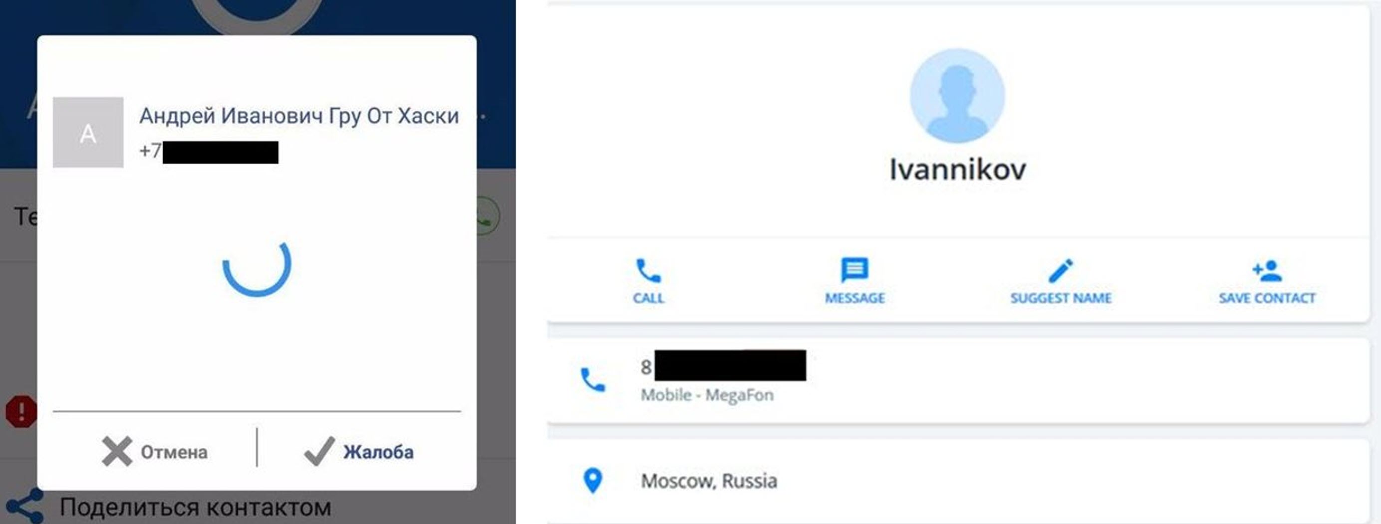 In one phone sharing app, this number appeared under the name ‘Andrey Ivanovich GRU - from Husky’. In the other phone-sharing app, the same number appeared under the name ‘Ivannikov’.
