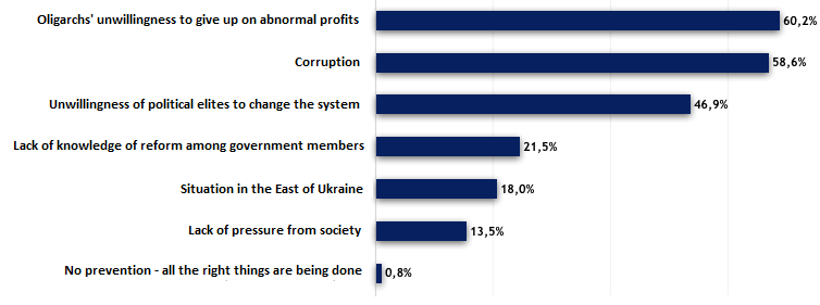 What prevents the authorities from implementing reforms, 2016Confidence in the reformer. If people do not support a reformer, they will not either support reform. In the absence of a popular leader, a complex reform is vulnerable. Reputation of the leader defines support for a policy that concerns citizens but is not quite clear to them. If citizens do not know or do not trust the leader, their opinion on the policy is susceptible to manipulation.