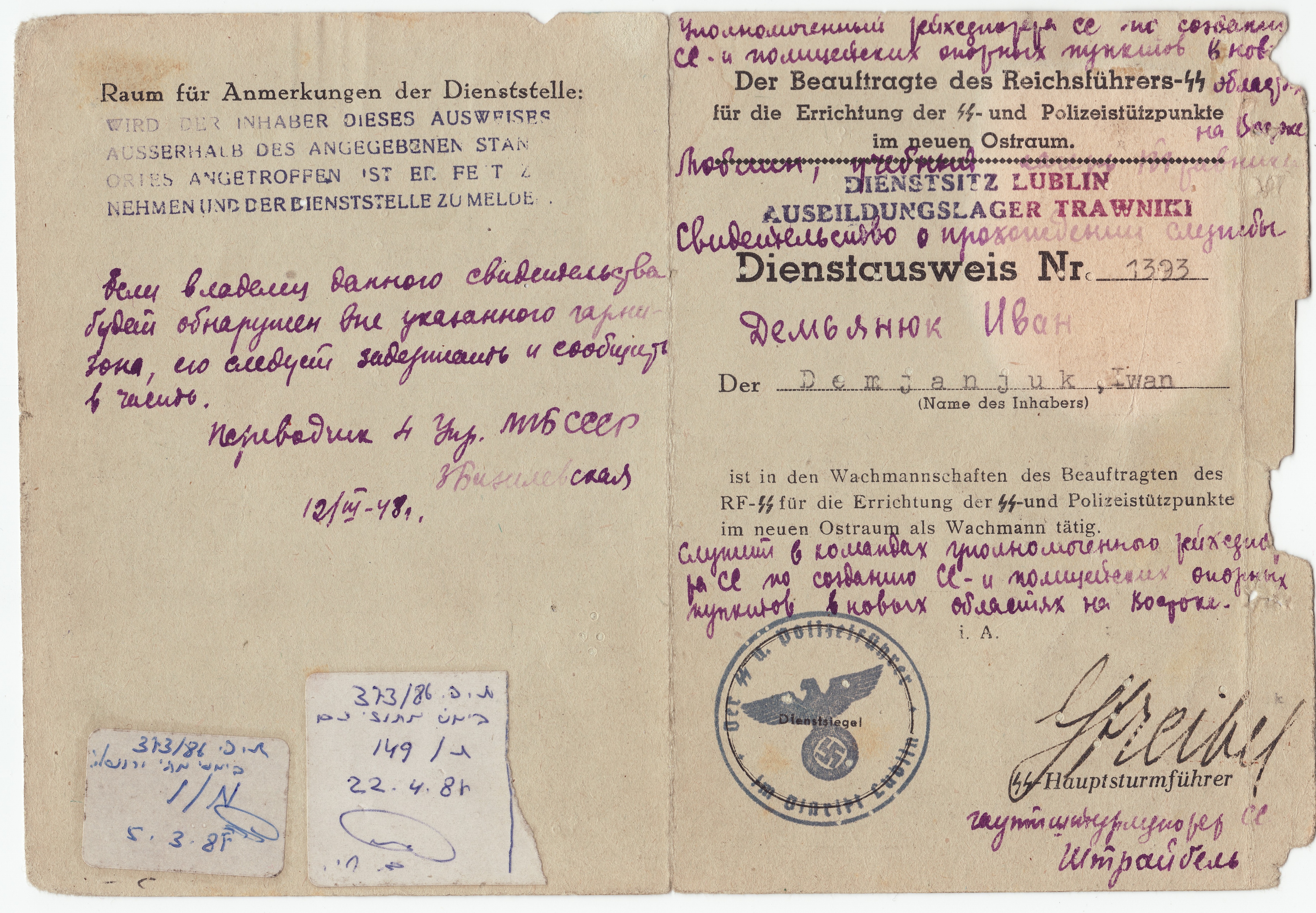 Trawniki ID Cards: