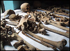 Soviet-Era Atrocity Unearthed in Ukraine Remains of 225 Apparently Killed by Secret Police Are Found at Monastery By Peter Baker Washington Post Foreign Service Tuesday, July 23, 2002; Page A01 ZHOVKVA, Ukraine � For two years, the Rev. Volodymyr Dolganyuk lived in the small, spartan room at a monastery here studying the word of God. For two years, he had no idea that just beneath his feet lay the work of unspeakable evil. Then one day someone decided to unseal the basement of the 17th-century building and came across a few bones. And then some more. And still more. By the time all the rubble and sand had been cleared out of the catacombs, the remains of 225 people had been unearthed � not those of ancient ancestors, but of fathers and mothers and siblings of today's Ukrainians, probably victims of a wave of killing by Soviet secret police after World War II. The discovery of the mass grave, announced last week in this small town just 30 miles from the border with Poland, sickened people in this corner of the old Soviet empire, but did not entirely surprise them. While Ukraine and other countries once dominated by Moscow struggle to build new societies, events periodically intervene to remind them they have yet to fully catalogue the horrors of the former era. "We must confront the past for the sake of the future," said Yevgen Gryniv, a local human rights activist who has been sifting through the residue at the monastery. "Right now it's fashionable to talk about terrorism. That's what it was � terrorism against the people. Here almost every place is connected to tragedy, to death." The tomb of the unknown victims beneath the floorboards at Vasilyansky Monastery is hardly the only mass grave found since the collapse of the Soviet Union a decade ago, but it is especially grisly. Of the 225 bodies dug out, about 80 belonged to children; workers discovered a few bones so small that specialists believe they belonged to a fetus just four months after conception. Some of the skulls have single, small bullet holes in the back, a few still ringed with black from the gunshot. Others have cracks down the front, apparently from an ax, or have been crushed on top, possibly by a hammer. The bodies were not found laid to rest, but rather crumpled as if thrown in. No buttons or belt buckles or combs or shoe soles � the parts of clothing that typically survive the longest � were found, suggesting the people were buried naked. Who they were or precisely how they got here remains a mystery. No one has come forward with information about what happened. But older people in this town of 11,000 near the city of Lviv said that after World War II the monastery was occupied by the NKVD, which in 1954 became the KGB. And the crypt has yielded a few clues about the timing of the killings � kopeck coins minted in 1946 and 1949 and torn pictures of a May Day-style parade featuring posters of a postwar local Communist leader. In all likelihood, according to people investigating the discovery, the bodies are those of Ukrainians executed by Soviet authorities in a campaign to pacify the region following the defeat of Nazi Germany. This part of western Ukraine was absorbed into the Soviet Union in 1939 when Joseph Stalin and Adolf Hitler carved up Poland. During World War II, the Nazis captured it. After the war, Ukrainian partisans who had battled the fascists refused to lay down their arms and fought the Soviets into the 1950s. [...] For his part, Gryniv did not fight with a gun. But he has scoured the hidden graves in the Lviv region for years. Since 1990, he and his group have found 16 mass graves in western Ukraine, some with hundreds of bodies, and have identified nine other sites to examine. [...] For all the work done already, the discovery at Vasilyansky Monastery stood out. Never before had such a large mass grave been found by accident. The bodies at Vasilyansky were found only because some Moldovan monks came to the Greek Catholic monastery seeking the crypt of a favorite saint. While searching the basement, they found a sealed passage and began chipping away. The first bones were found in late March . As more turned up, the monks realized they needed to call in the authorities. [...] "We were trembling a little," said Miron Ivanyuk, 42, one of the workers who dug through the sand and concrete. His brother, Ivan, 47, saw the small bones and thought of his children. "I want them to find out who did this. I want them to take care of this. There must be somebody who knew. They must still be here." Few were more shocked than Dolganyuk, the 33-year-old priest who lived right above the secret tomb. "I don't understand the cruelty that people had, the hate people had. They didn't love children, they didn't love Ukraine. They didn't have any kindness." But he added, "We don't have the right to have hate against the people who did this because Jesus said in the Bible to forgive and forgive again." [...] Peter Baker, Soviet-Era Atrocity Unearthed in Ukraine: Remains of 225 Apparently Killed by Secret Police Are Found at Monastery, Washington Post, 23-Jul-2002, www.washingtonpost.com/wp-dyn/articles/A47017-2002Jul22.html |