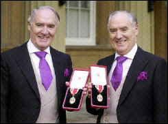 ![]() The Spectator owners, the Barclay twins, displaying medallions of their knighthood |