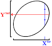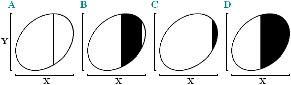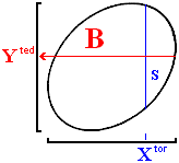 Our argument will proceed with the help of Display 12-8, which we had better look at right now. Each graph in Display 12-8 should be imagined superimposed on Display 12-6 so as to permit all identifications of regression-incompatibility to be read off from Display 12-6. The center of the ellipse in any graph in Display 12-8 should � in our imaginations, anyway � be placed right on top of the center of the green Text 1 ellipse in Display 12-6, and lines 3 and 4 in Display 12-8 should be superimposed on the on the regression red lines of Y on X and the blue ones of X on Y, respectively in Display 12-6. The horizontal and vertical lines