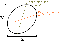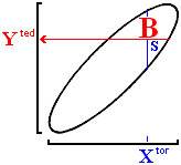 Let us be clear what regression toward the mean signifies. In a particular instance, we saw that the predicted 12.5 was closer to the mean of all the sons' scores than the predictor 13 was to the mean of all the fathers' scores. Restating this more generally, when Y is being predicted from X, regression toward the mean conveys that predicted Yted is closer to Mean-Y than predictor Xtor is to Mean-X. The predicted score is closer to the mean of all the predicted scores, than the predictor score is to the mean of all the predictor scores.