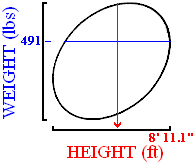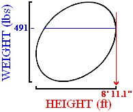 Suppose the physics professor's data came out as in Display 12-4, which resembles Display 12-3, except for a greater overlap of the ellipses. Overlap of ellipses is desirable because it more accurately represents what we are likely to find in real data, but too much overlap crowds the graph and makes it harder to see what is going on. Since the degree of overlap makes no difference to our conclusions (which are based on an inspection of regression lines, not of ellipse boundaries), in most of the graphs in this chapter we come down on the side of visual clarity and keep overlap low, and often zero. In order for the graphs to be representative not only of actual data, but also of data calling for no extreme extrapolation of regression lines, the ellipses may be viewed as enclosing not all or almost all of the data, but only its innermost, densest core.