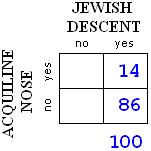 Thus, a 14-son is most likely to come from a 14-father (1/3 of all 14-fathers produced a 14-son), is less likely to come from a 13-father (1/6 of all 13-fathers produce a 14-son), and is still less likely to come from a 12-father (1/9 of all 12-fathers produced a 14-son. We see that although a 12- or a 13- father is less likely than a 14-father to produce a 14-son, because the number of 12- and 13-fathers is large (there are fifteen of them) compared to the number of 14-fathers (there are only three of them), it is the 12- and 13-fathers who contribute the majority of 14-sons. Thus, Display 1-2 shows that 2/3 of the 14 sons come from fathers who scored less than 14.