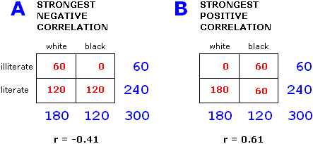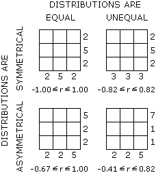 Generally, r is able to range from +1.00 to -1.00. At these two extremes, all the dots fall right on a straight line having a positive or a negative slope, respectively.