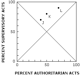 Suppose, finally, that the professor matches on both first and second test. Now, he is reduced to comparing Class 1 student F to Class 2 student I. The more variables we match on, we have already seen, the more is subject loss pushed to unacceptable levels. But on top of that, even if he did match on both tests, regression would still be producing undermatching on aptitude. We can now imagine that a third aptitude test was given along with the other two. If it had, then students F and I who were matched on two of the tests would still regress toward their respective means on the third test, and still come out undermatched. This we will have to take without demonstration, as three-variable cases are awkward to diagram.