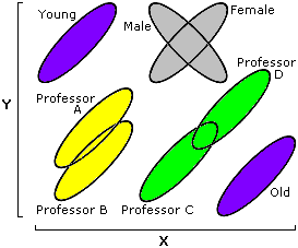 Sex discrimination is one of the few areas of study in which, thanks to Birnbaum (1979a, 1979b, 1981, 1982), several reverse-direction analyses have been carried out. Birnbaum cites four studies in which the observation that women were paid less than men of equal merit had led initially to the conclusion that they were being discriminated against. Performing a reverse-direction analysis on each of these studies, Birnbaum discovered that three were regression-compatible as in Display 12-7A, and only one was regression-incompatible as in Display 12-7B. The precise juxtaposition of ellipses in Display 12-7B is intentional, and will be returned to toward the end of the next section. [DIDN'T REMEMBER THIS WHEN PREPARING THE GRAPH, AND SO MADE IT EXACTLY LIKE 12-5, WHICH WILL PROBABLY NEED TO BE CHANGED.]