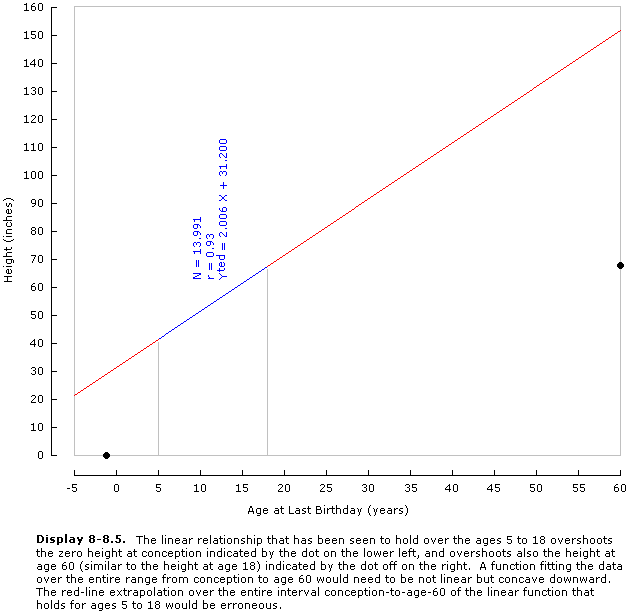 Let us conclude our introduction to ANCOVA with these observations. Primarily, Ancova is a variety of matching, and subject to the same defects and limitations, prominent among them being that correlational data remain correlational and continue to offer no assurance of ceteris paribus, and that regression toward different means guarantees that just as matching undermatches, so ANCOVA underadjusts, so that in Display 12-4, the difference between adjusted mean grades might still be caused not by different texts but by different aptitudes. Second, just as we are able to match on several variables, so ANCOVA is able to control for several covariates. In matching, the number of matching variables was limited by subject loss. In ANCOVA, although there is no subject loss, there is a similar limitation on the number of covariates, a limitation which may be described intuitively as a limit on the amount of information that can be extracted from a single bundle of data, and which may be described statistically as a limit imposed by shrinking degrees of freedom. Third, although ANCOVA offers the advantage of using all the data, it involves certain assumptions which if wrong make its use misleading � for example, that the regression lines are straight, and that they are parallel. Finally, whereas the ability of ANCOVA to produce an answer even in cases where groups have little or no overlap on the covariate is a blessing, it is a blessing made possible by extrapolation, and that extrapolation may be in error (see "Extrapolation" in Chapter 8).