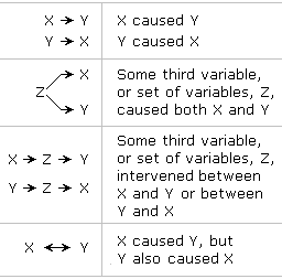 Display 11-1. Some causal patterns that could underlie a correlation between X and Y.