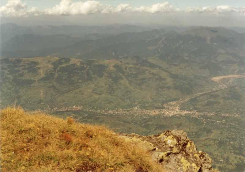 ![]() Looking toward the north-east from the 2303 m peak of Pietrosul Rodnei shows Baia Borsa in the valley below, and with Ukraine in the distance, beyond the hills which look down on the valley from the far side. The Tisza River mosaic clarifies Baia Borsa's proximity to the Ukrainian border, and clicking to enlarge the Baia Borsa thumbnail in the mosaic shows Baia Borsa located at X=30 and Y=87, and on the river Tsysla (to use Ukrainian transliteration) or Cisla (to use a spelling that is quoted on the instant page). It is the Cisla which conveys Baia Borsa pollutants to the Viseu, and it is the Viseu which carries them north-west to the Ukrainian border where the Viseu joins the Ukrainian-sourced Tisza, and so on as can be followed in the above-cited Tisza River mosaic. A spill into the Vaser would be even earlier in the chain, the Vaser flowing into the Cisla. The above photograph came from www.suchy.wz.cz/photos/bucovina.htm |