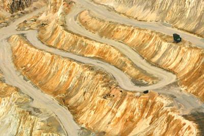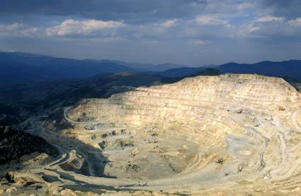 ![]() La mine de cuivre de Rosia Poieni à 4km de Rosia Montana (3km de diamètre,300m de profondeur). Photograph and caption are from mchanut.club.fr/rosia.htm. The caption in English might read "Four km from Rosia Montana is the copper mine of Rosia Poieni which is 3 km in diameter and 300 m deep." |