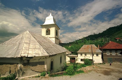 Das gesamte Tal mit dem antiken Karpatenort Rosia Montana (Alburnus Major) soll weggebaggert werden (vorn eines der traditionellen Holzhaeuser) |