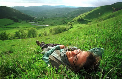 Stephanie Roth, schweizerisch-franzoesische Koordinatorin der oppositionellen NGO "Alburnus Major" über dem Rosia-Tal, das fast komplett abgetragen werden soll |