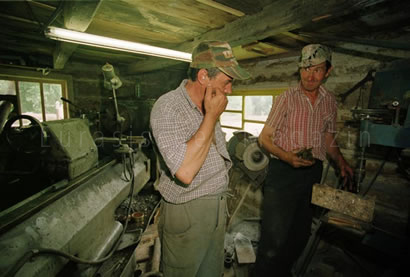 Maschinenführer bei der Pause (hinten Minenwässer) |
