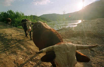 Anwohner treiben weiter Vieh- und Landwirtschaft - Kühe auf dem Heimweg |