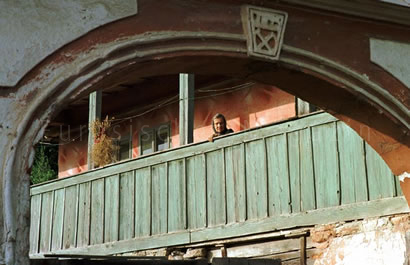 Alte Frau in ihrem traditionellen Bergmannshaus |