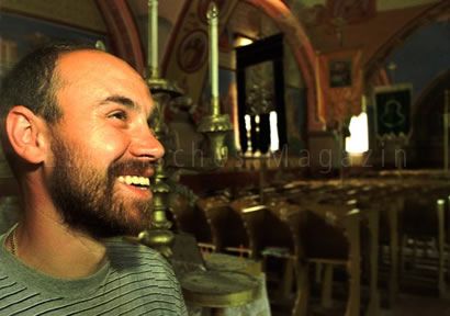 Der junge orthodoxe Priester in seiner Dorfkirche |