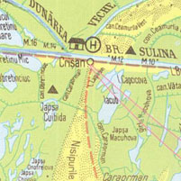 MAP: ROMANIAN DELTA ROADS 1024 x 1005 jpg Dashed lines appear to designate roads. Citation pending. HOME DISINFORMATION PEOPLE KUCHMA PUTIN YUSHCHENKO DANUBE MAPS