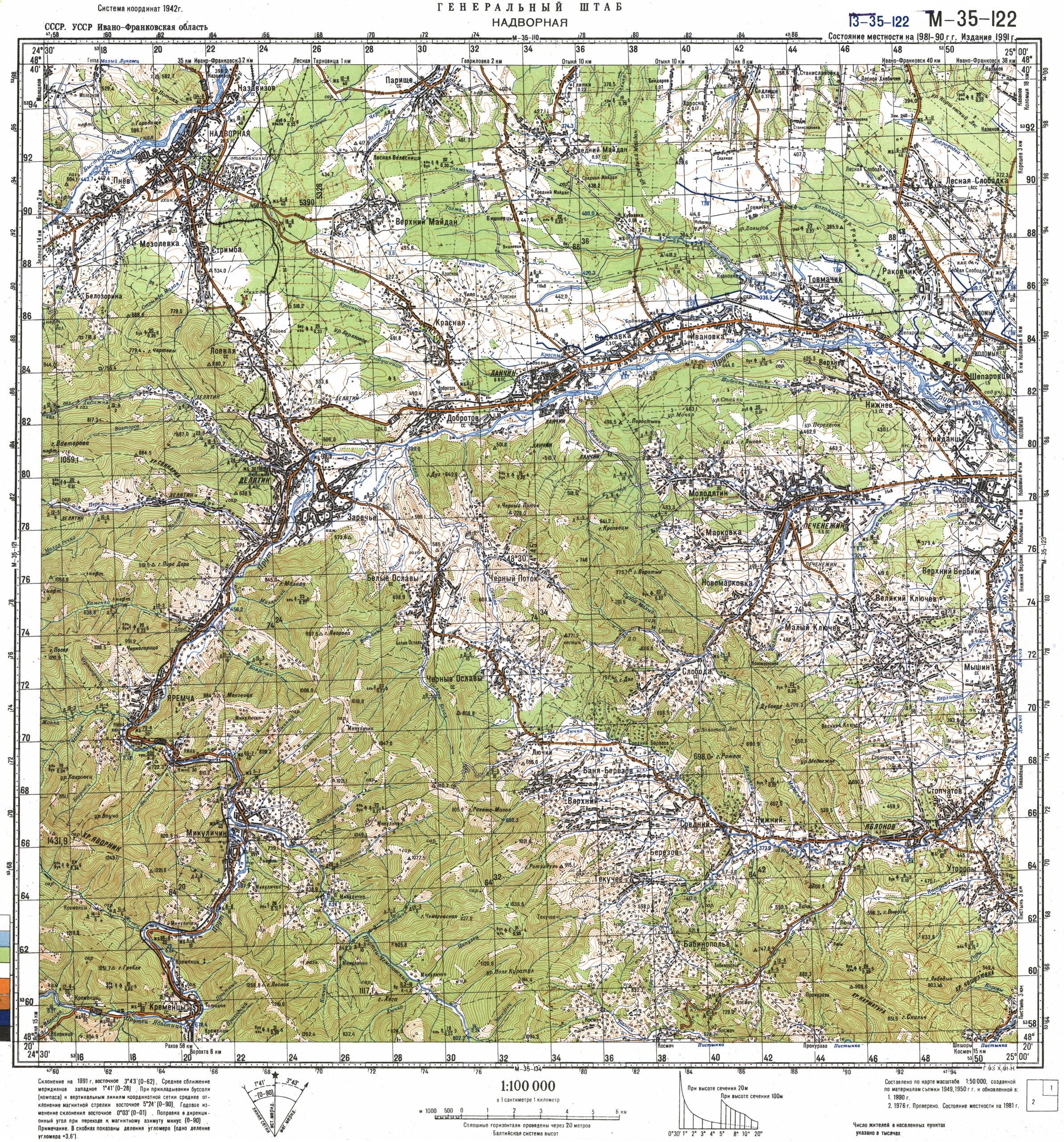 HOME DISINFORMATION PEOPLE KUCHMA PUTIN YUSHCHENKO DANUBE MAPS MOSAIC MAP M-35-122 48°20' to 48°40' N 24°30' to 25°00' W
