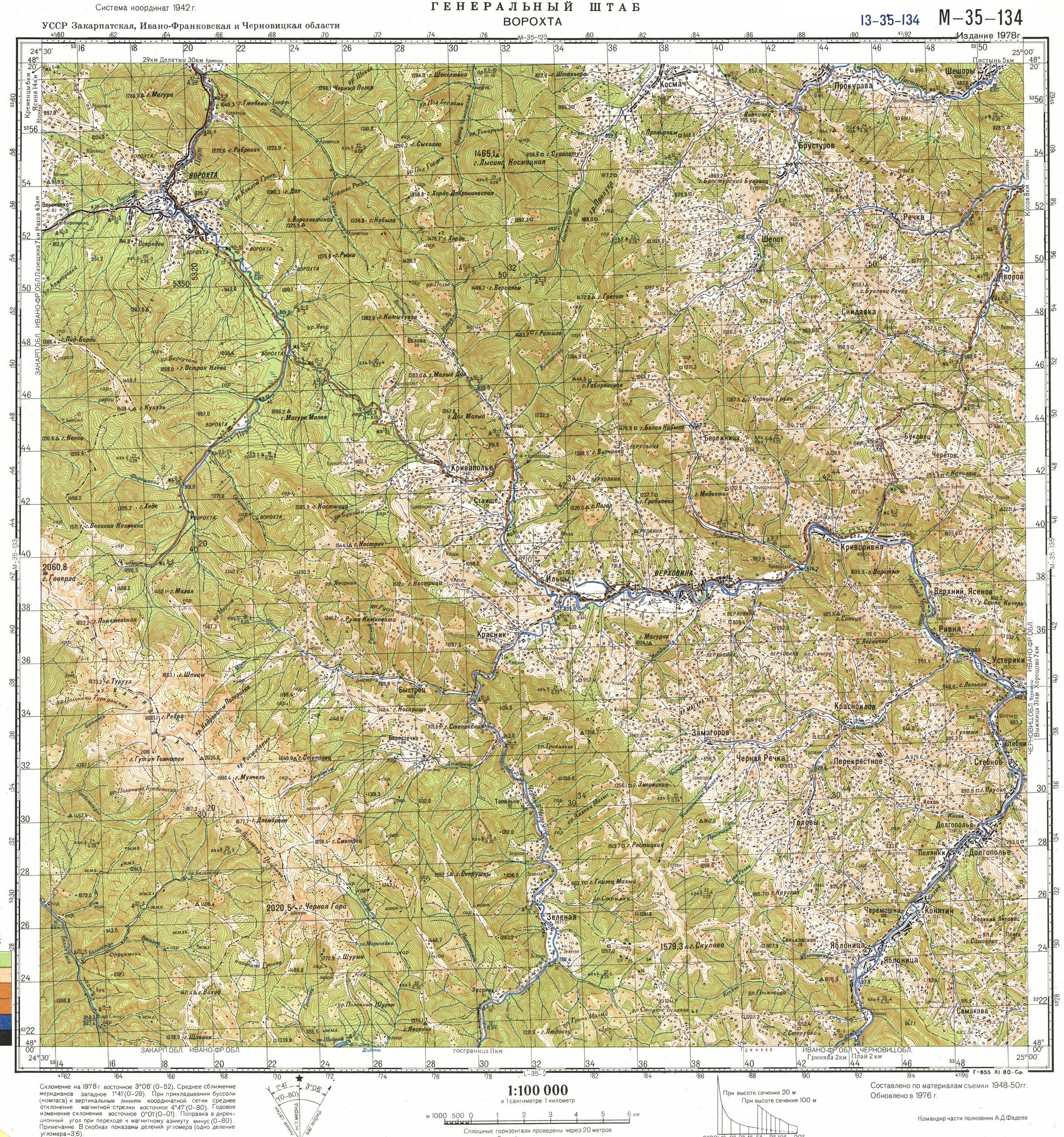 HOME DISINFORMATION PEOPLE KUCHMA PUTIN YUSHCHENKO DANUBE MAPS MOSAIC MAP M-35-134 48°00' to 48°20' N 24°30' to 25°00' W