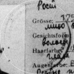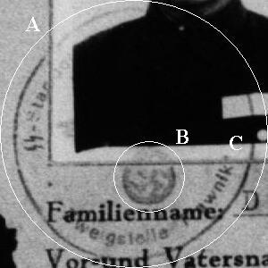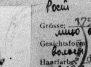 In the case of this card, it was brought to Washington, DC from Moscow with the express instructions that it not leave the control of the Soviet government. As such the card was examined by the author in the Soviet Embassy in Washington, DC under the watchful eye of Russian Embassy personnel. Any examination that was required, was permitted. The card was photographed there and was then returned to Soviet personnel. At the time of trial, a Soviet embassy staff member brought the document to Cleveland, Ohio where it was shown to the court. A copy was then substatuted for the court record and the original was returned to Moscow. This is the first time such a document has ever been released to the United States for use in trial. Others have since been made available. Gideon Epstein, The Trawniki Card � The role of the forensic document examiner in modern war crimes trials, Presented to the annual meeting of the American Society of Questioned Document Examiners, Houston Texas, August 16-20 1981. The misspelling "substatuted" is in the original. |