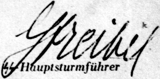 [Stamp:] The SS and Police Chief in the Lublin District [The German reads top: "Der SS und Polizeiführer", and bottom "Im Distrikt Lublin"] | SS-Hauptsturmführer |