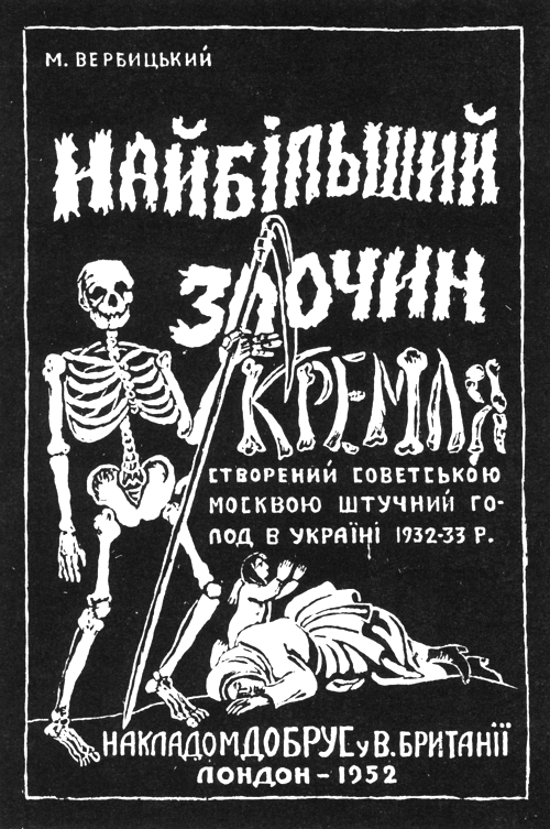 ![]() M. Verbytskyi. The Kremlin's Greatest Crime: The Planned Artificial Famine in Ukraine, 1932-1933. London, 1952. In Famine in the Soviet Ukraine 1932-1933: A memorial exhibition, Widener Library, Harvard University, Harvard University Press, Cambridge, Massachusetts, 1986, p. 50. |