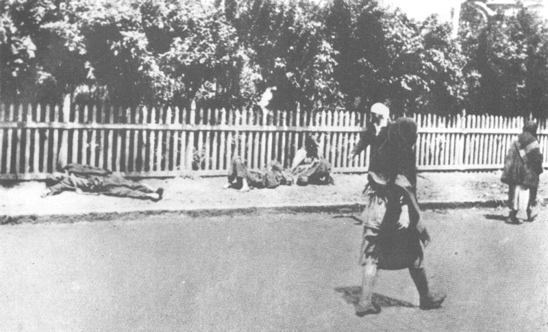 ![]() Passers-by no longer pay attention to the corpses of starved peasants on a street in Kharkiv, 1933. In Famine in the Soviet Ukraine 1932-1933: A memorial exhibition, Widener Library, Harvard University, Harvard University Press, Cambridge, Massachusetts, 1986, p. 35. |