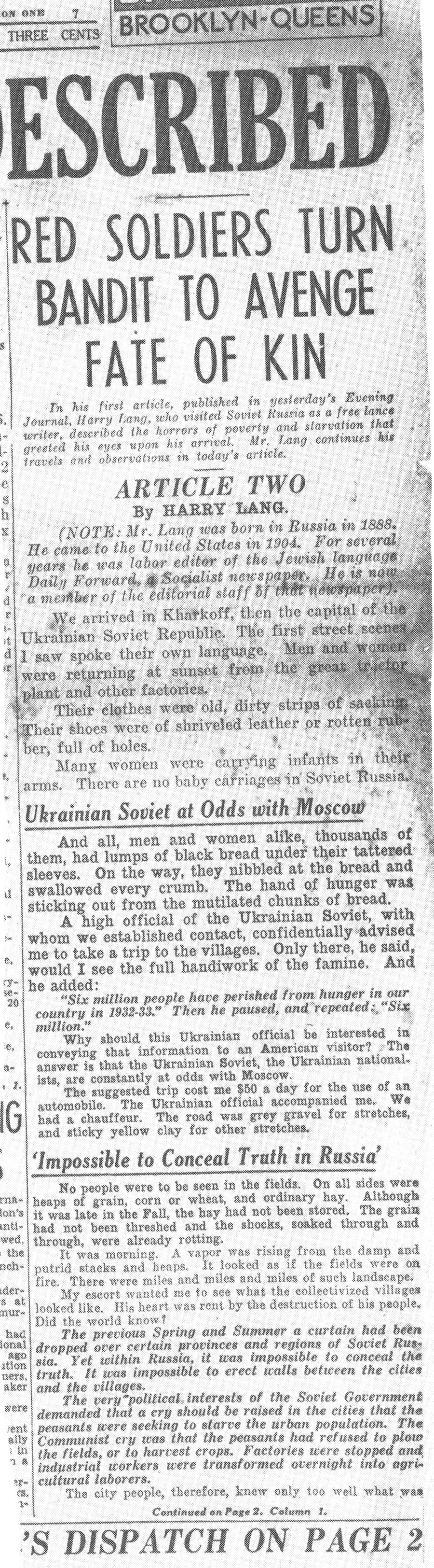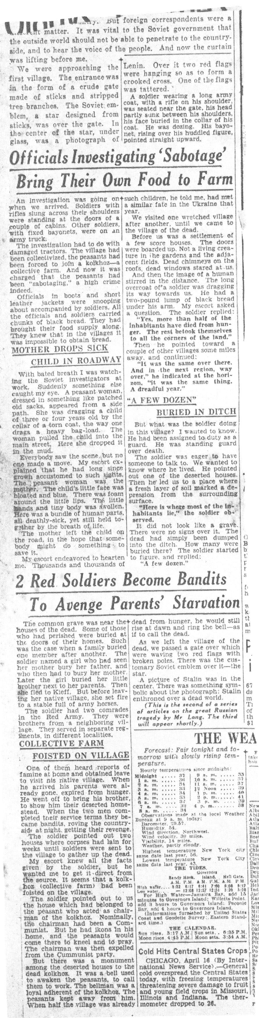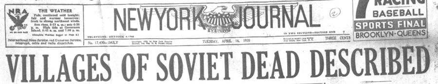 "Villages of Soviet Dead Described," New York Evening Journal, 16 April 1935, pp. 1-2.