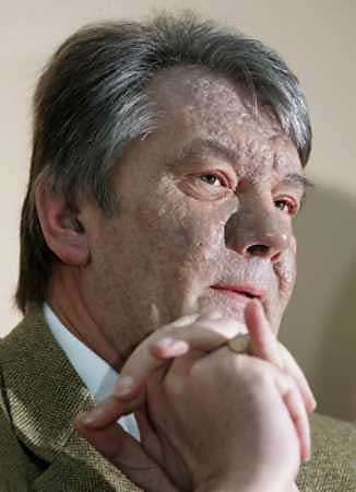 ![]() Ukrainian presidential candidate Viktor Yushchenko was known for his good looks until a mysterious illness left him pockmarked. (AP file photo) |