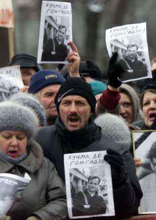 Earlier anti-Kuchma protests in front of the Ukrainian Parliament, with picketers holding up photos of Heorhy Gongadze on which is printed, "KUCHMA, WHERE IS GONGADZE?" The first two below are 21-Dec-2000, and the third one is 19-Dec-2000.: