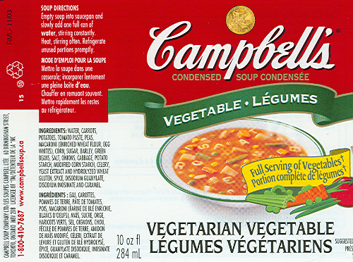 Appendix B: Telephone call to Campbell's Soup. At the time of the call, Prytulak had read in Harper's that Campbell's Vegetable Soup was kosher certified, and had inspected a can at his local Safeway supermarket, buy had not yet discovered on the Orthodox Union web site that it was the Vegetarian variety of Vegetable soup for which kosher certification was being claimed. The audio file which corresponds to the transcript below can be heard at