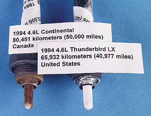 ![]() WEAR AND TEAR: The two spark plugs show coloration differences between spark plugs from one car using MMT-containing gasoline (left) in Canada and another car not using MMT-containing gasoline in the United States, according to the Ford Motor Co. The Scientist: www.the-scientist.com/yr1998/nov/research_981123.html |