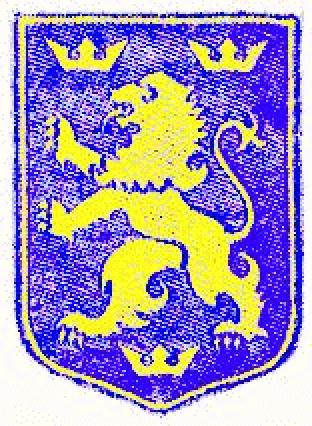 Blue and gold Lion Rampant armshield, worn on the right arm by Ukrainians in the Galicia Division, and echoed on their right collarpatch instead of the lightning-bolt SS worn by German members of the Division.