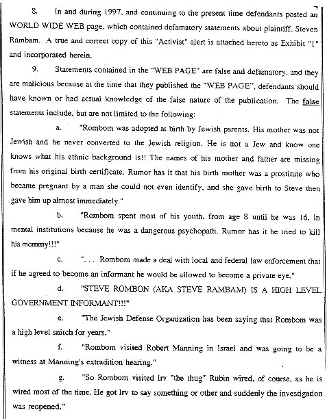 including the statements that Rambam is a government informant and a �snitch�;