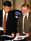 ![]() Convicted JDL terrorist Steven Rambam with York University historian Irving Abella promoting their Fifty-Confessions Hoax. |