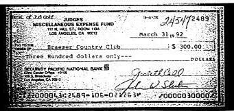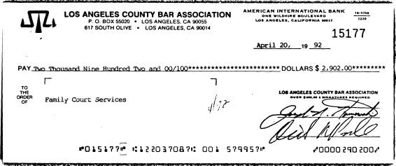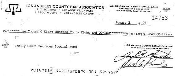 In July 1994, [Marvin] Bryer challenged the internal finance auditor of the family court, Gregory Pentoney, to turn over all records of donations to the court from members of the Los Angeles County bar. It was in those records that he found two "donation" checks totaling $6,750 to the judges' fund, requisitioned through the bar association by the mother of the man Bryer's daughter was resisting in her custody case. This was regarded as compromising family-court judges in Los Angeles County from hearing the case and it was moved to Orange County. Kelly Patricia O'Meara, Is Justice for Sale in L.A.?, Insight Magazine, 03-May-1999, johnnypumphandle.com/cc/bryr0910.htm#tortclaim |