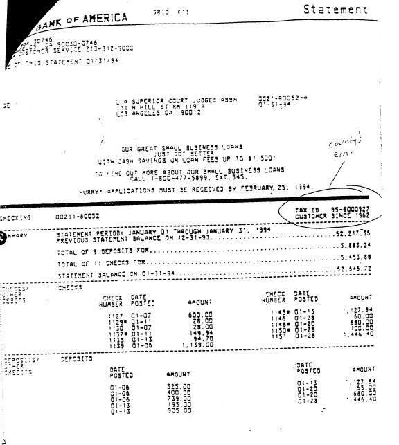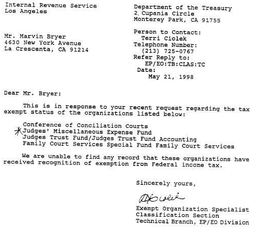Law-enforcement sources are nervous and concerned about the LASCJA accounts. They and county officials tell Insight not the least of the concerns is that for years county employees, paid by the taxpayers, were at the same time working on the LASCJA's books. This is because before filing for federal tax-exempt status in late 1997, the LASCJA was using the federal employer-identification number, or EIN, of Los Angeles County, which in turn covered the fact that the judges were not paying taxes on the outside income they moved through their association. Kelly Patricia O'Meara, Is Justice for Sale in L.A.?, Insight Magazine, 03-May-1999 www.johnnypumphandle.com/cc/bryr0910.htm Bold emphasis added. |