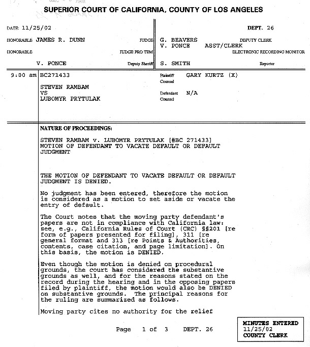 MINUTE ORDER