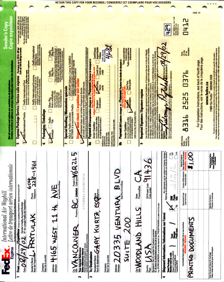 Defendant without attorney is: Lubomyr Prytulak [Telephone] [Address] |