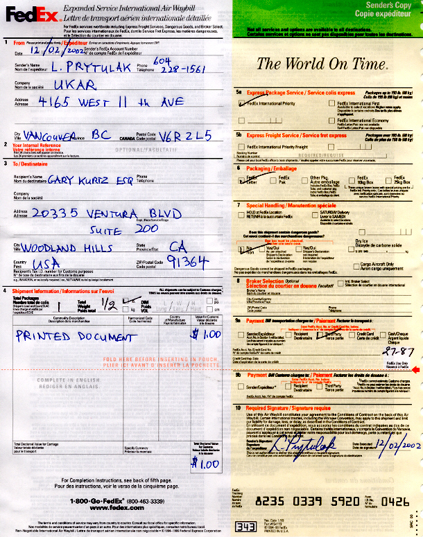 As Gary Kurtz states in each of his two documents that the Court arrived at its decision "after reviewing all the papers submitted to the Court," Defendant Lubomyr Prytulak ventures to ask exactly what papers these might have been, and especially whether they include all, or some, or even any, of the seven documents whose exclusion from the trial record Defendant Prytulak has been complaining of, namely:
