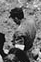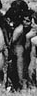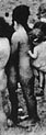 Unusually tall and thin woman with pigtails who could be 20 years old occupies the middle of the photograph fragment above. Immediately in front of her are visible the legs of a girl who might be about 10. | Perhaps a young woman. Higher resolution would help. |
