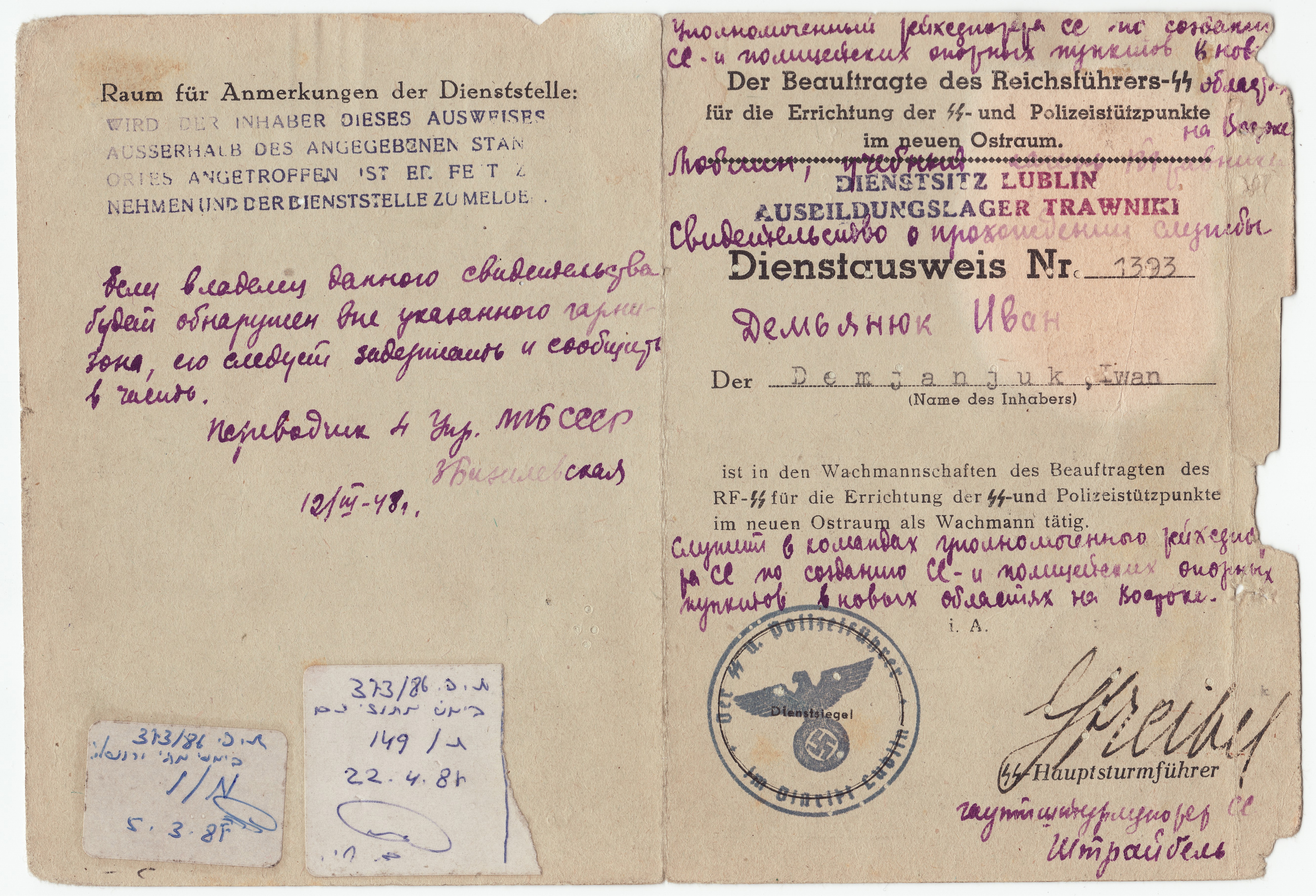 Trawniki ID card, which purportedly indicates that Mr. Demjanjuk was